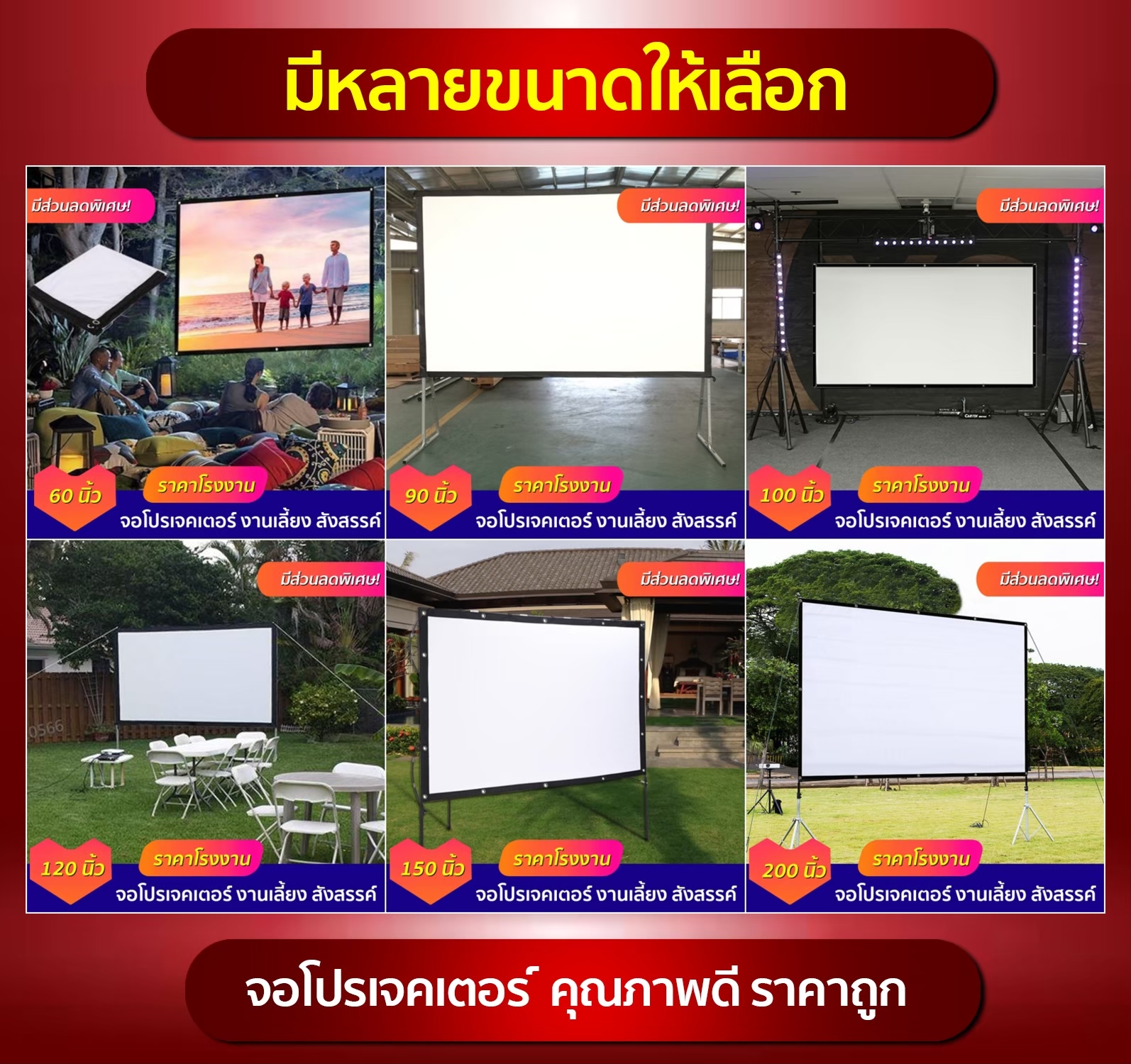จอโปรเจคเตอร์ พับเก็บใส่รถเก๋งง่ายต่อการขนย้าย แผ่นเจคเตอร์พกพาแบบ HD ลดสูงสุด 60 % รับประกันความทนทาน 1 ปีเต็ม !