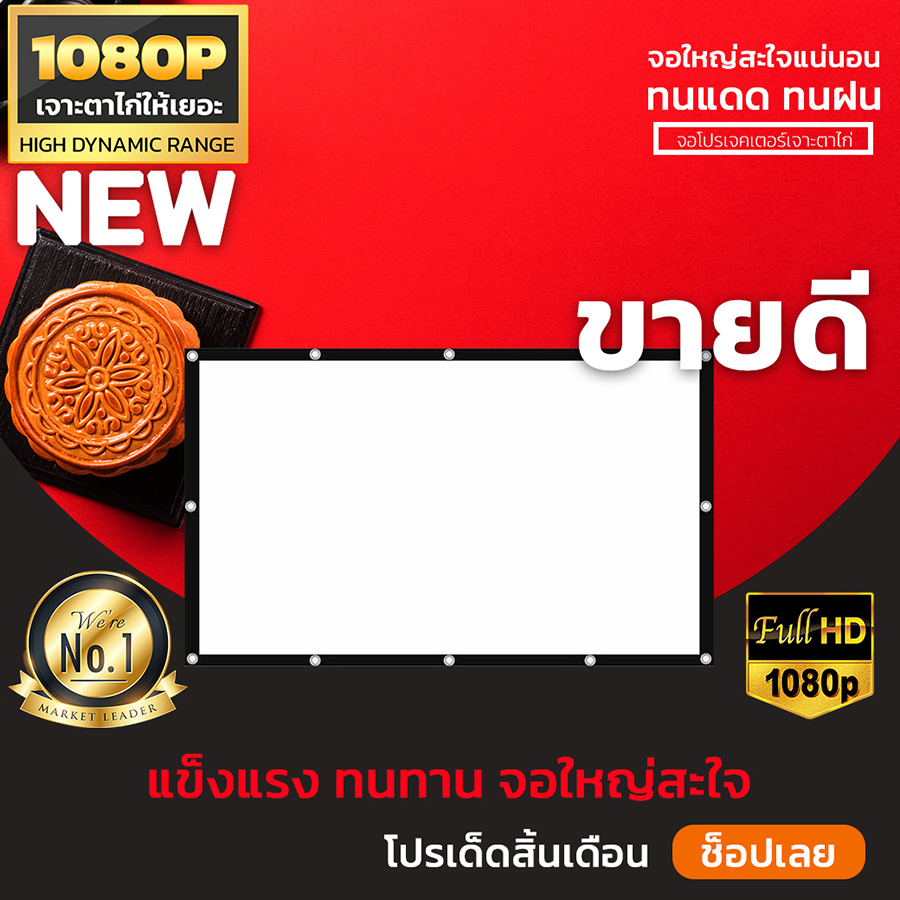 จอ 1080 p ภาพชัด 1080 p เนื้อผ้าขาวสว่างแสดงสีภาพคมชัด จอโปรเจคเตอร์ยิ่งมืดยิ่งชัด โปรโมชั่นรับฝน