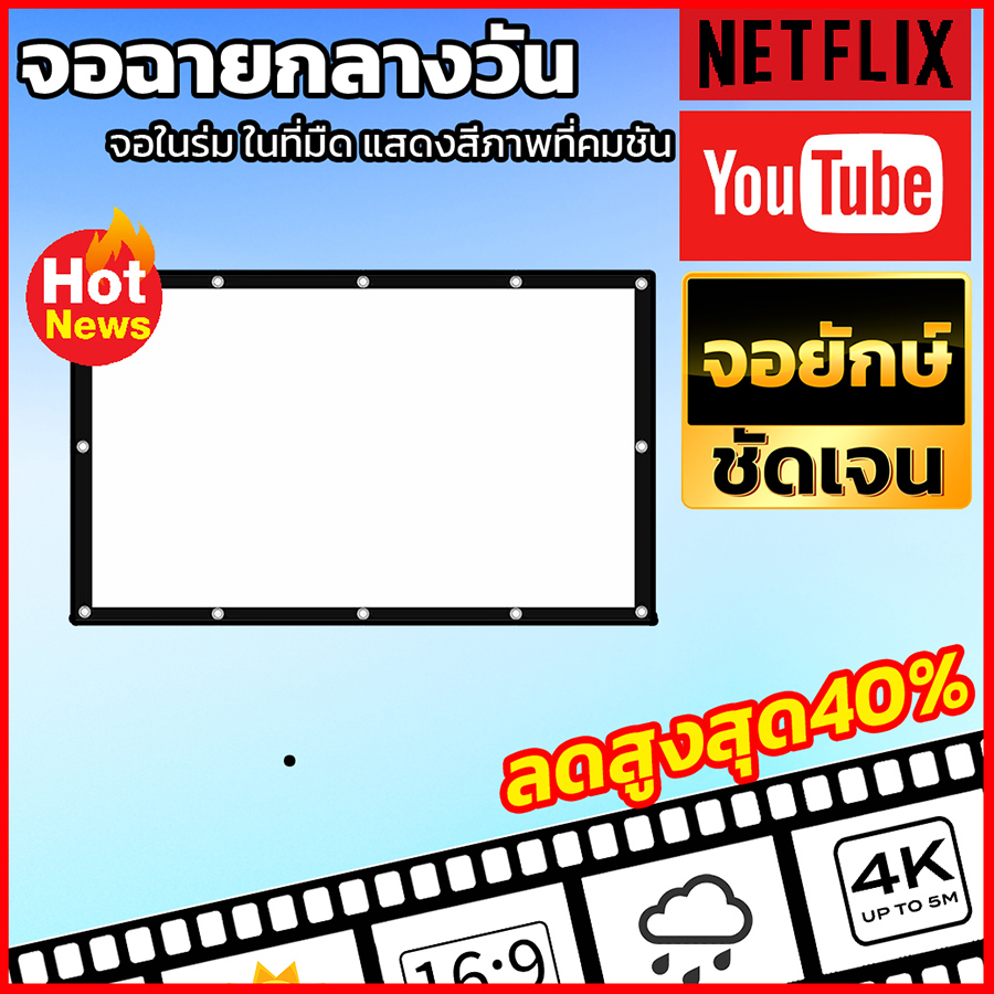 จอโปรเจคเตอร์ ทำความสะอาดง่าย ทำโรงหนังในห้อง Projector Screen 4K แบบพกพาสีขาวผ้าวัสดุ จอโปรเจคเตอร์ พับเก็บใส่รถเก๋งง่ายต่อการขนย้าย แผ่นเจคเตอร์พกพาแบบ HD ลดสูงสุด 60 % รับประกันความทนทาน 1 ปี